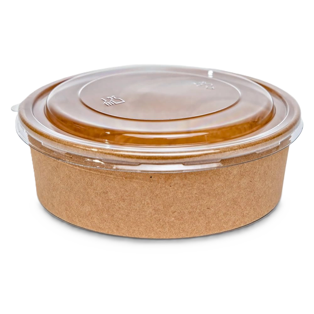 Brun pappersskål 1000 ml av kraftpapper och PE-belagd insida. Utmärkt för sallader, soppor, m.m.